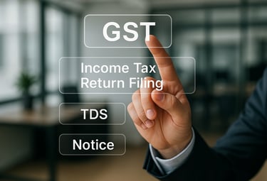 Integrated Solutions: We are a one-stop solution. From filing your GST and ITR to creating personalized Investment Plans, we handle all your financial needs under one secure roof.